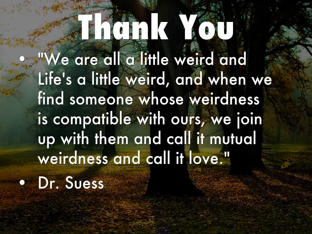 "We are all a little weird and Life's a little weird, and when we find someone whose weirdness is compatible with ours, we join up with them and call it mutual weirdness and call it love."