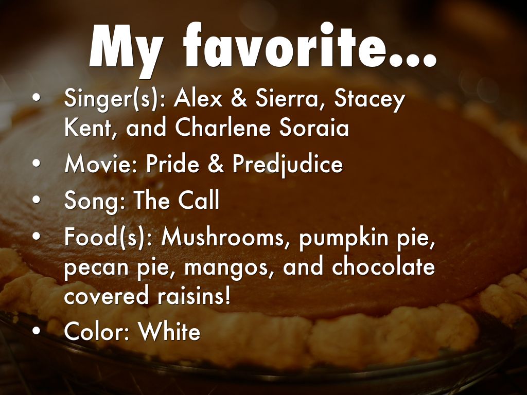 Food(s): Mushrooms, pumpkin pie, pecan pie, mangos, and chocolate covered raisins!