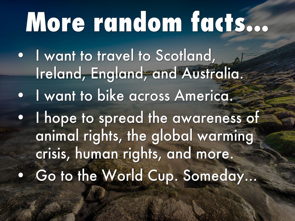 I hope to spread the awareness of animal rights, the global warming crisis, human rights, and more.