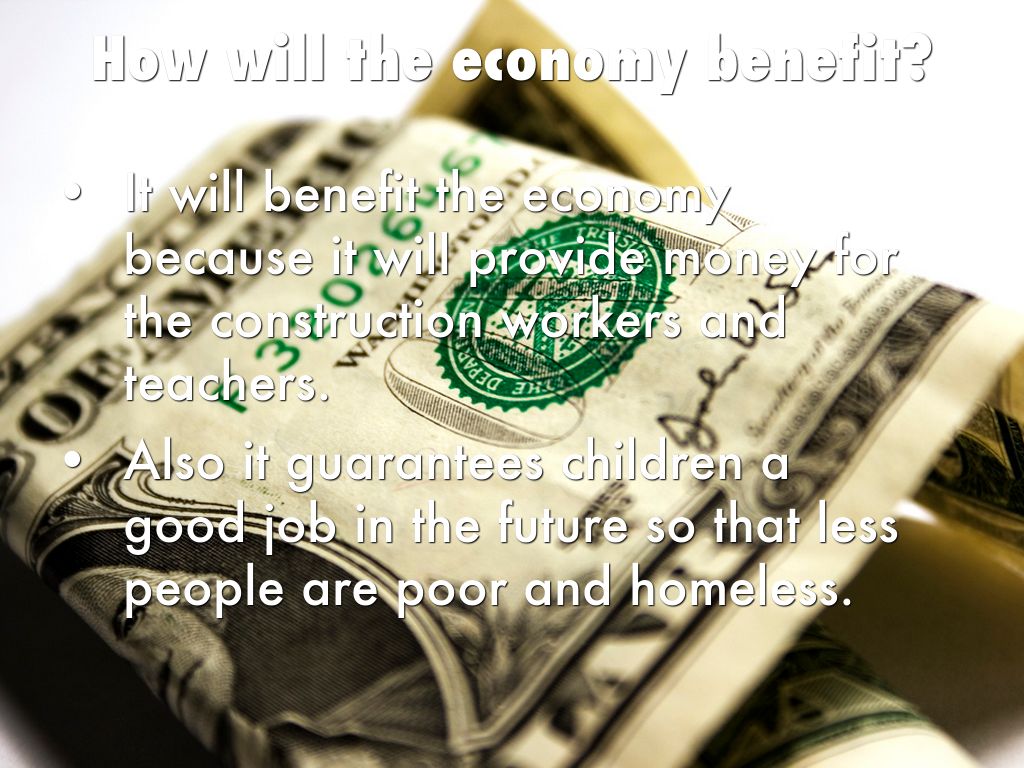 • It will benefit the economy because it will provide money for the construction workers and teachers.
