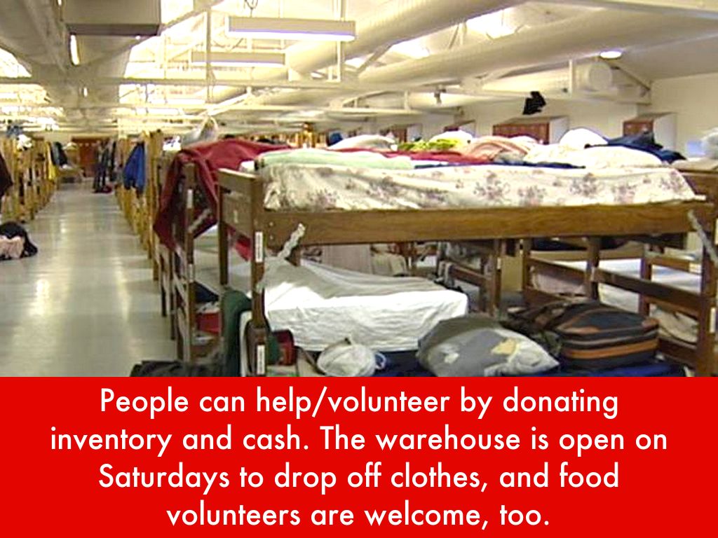 People can help/volunteer by donating inventory and cash. The warehouse is open on Saturdays to drop off clothes, and food volunteers are welcome, too.