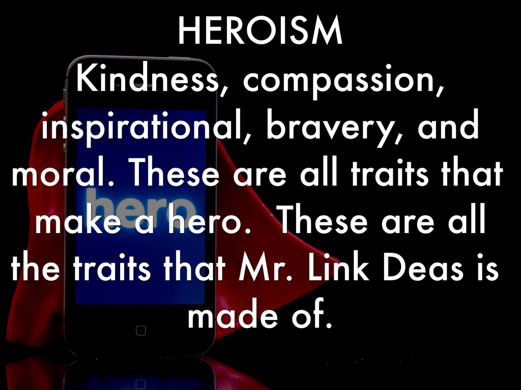 HEROISM Kindness, compassion, inspirational, bravery, and moral. These are all traits that make a hero. These are all the traits that Mr. Link Deas is made of.