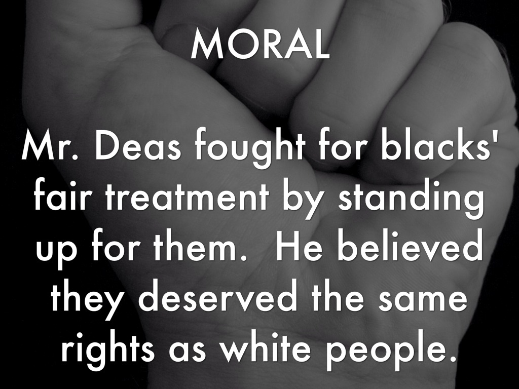 Mr. Deas rose from the audience in the courtroom to stand up for Tom. He knew Judge Taylor would yell at him and might even kick him out of the courtroom and throw him in jail for interfering with the trial, but he stood up anyway.