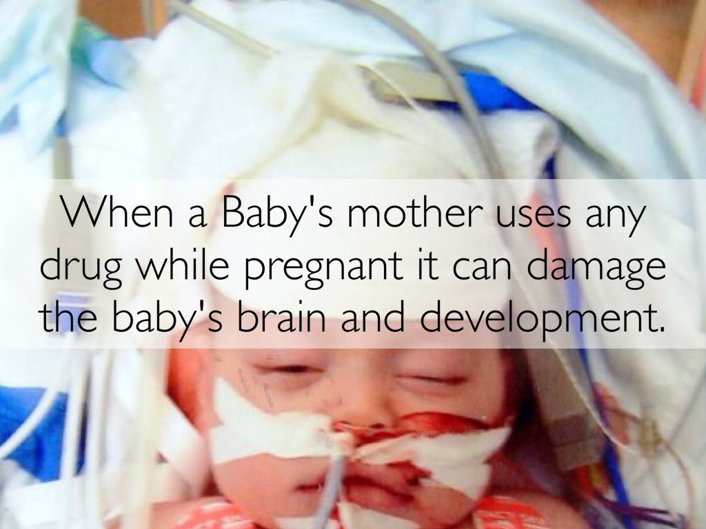 When a Baby's mother uses any drug while pregnant it can damage the baby's brain and development.