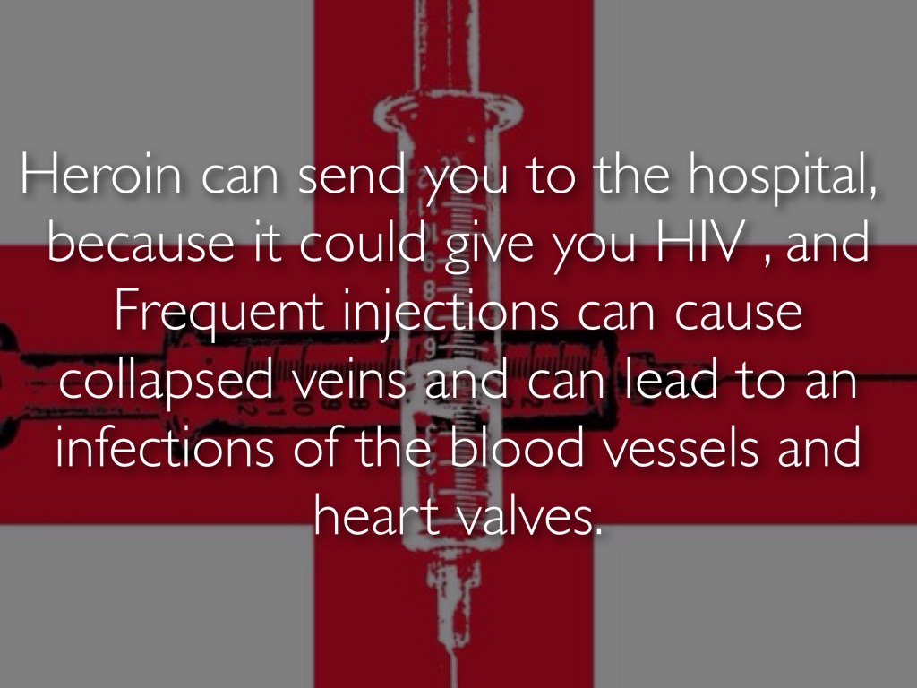 Heroin can send you to the hospital, because it could give you HIV , and Frequent injections can cause collapsed veins and can lead to an infections of the blood vessels and heart valves.