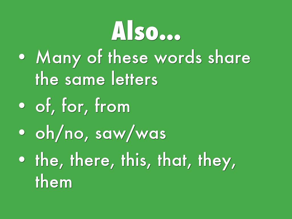 Much time needs to be spent on these words so students remember them.