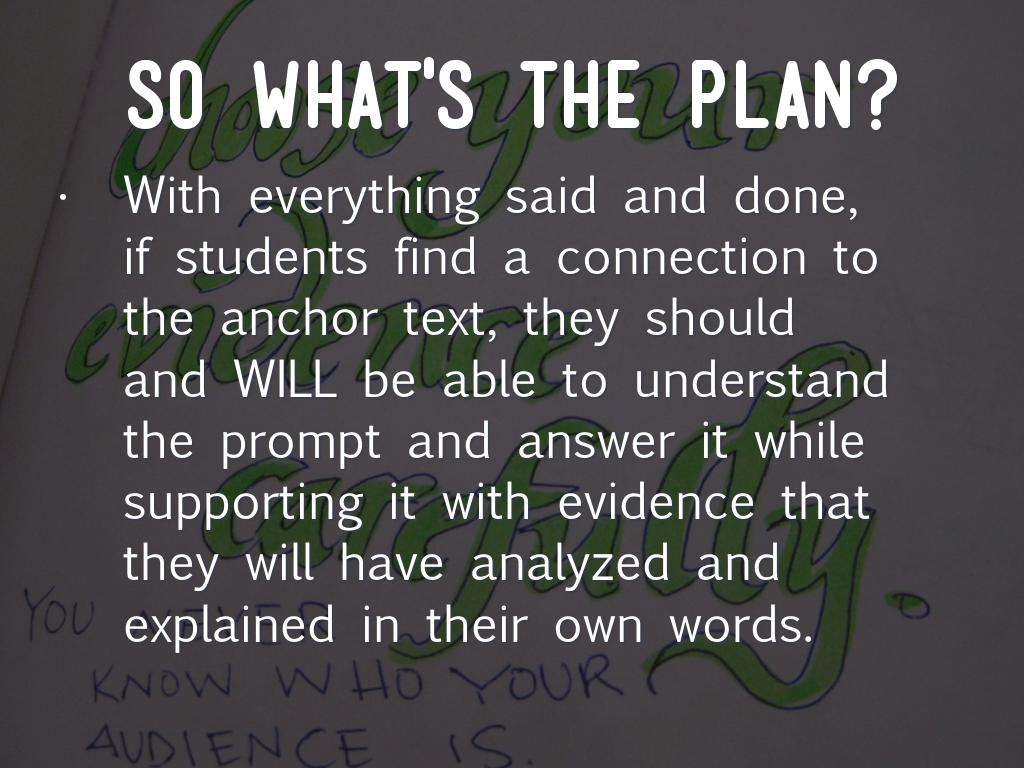 With everything said and done, if students find a connection to the anchor text, they should and WILL be able to understand the prompt and answer it while supporting it with evidence that they will have analyzed and explained in their own words.
