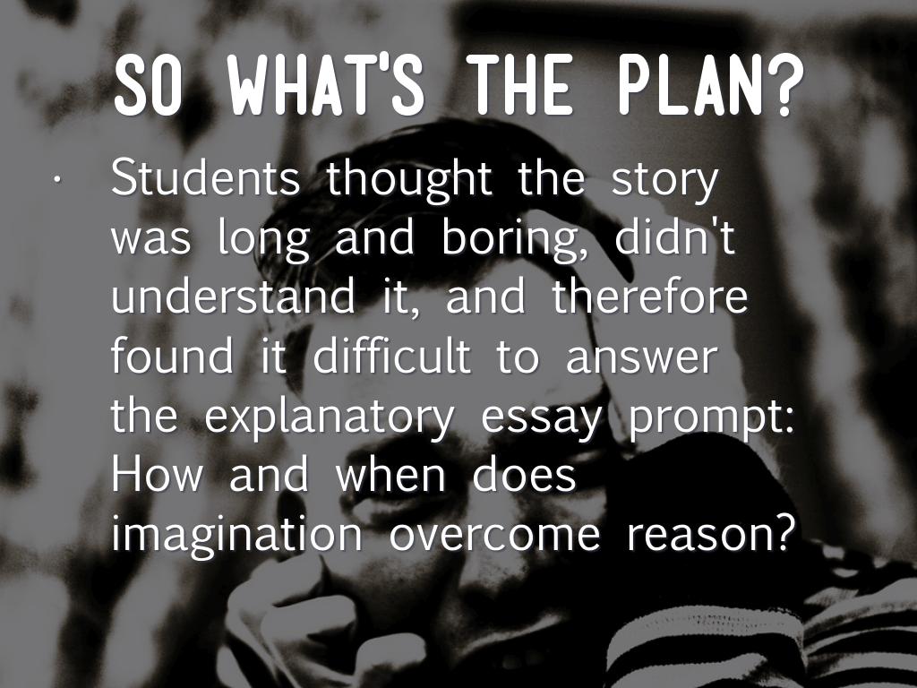 Students thought the story was long and boring, didn't understand it, and therefore found it difficult to answer the explanatory essay prompt: How and when does imagination overcome reason?