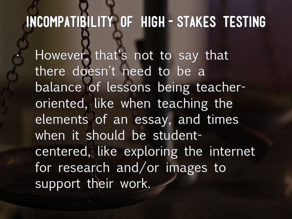 However, that's not to say that there doesn't need to be a balance of lessons being teacher-oriented, like when teaching the elements of an essay, and times when it should be student-centered, like exploring the internet for research and/or images to support their work.