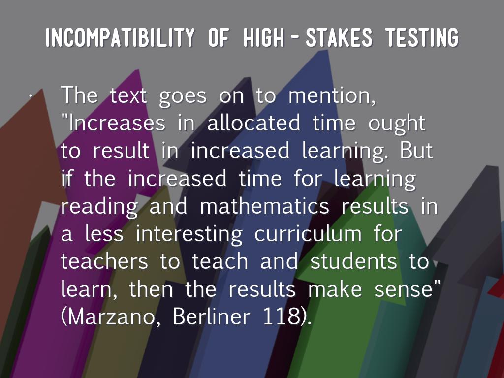 The text goes on to mention, "Increases in allocated time ought to result in increased learning. But if the increased time for learning reading and mathematics results in a less interesting curriculum for teachers to teach and students to learn, then the results make sense" (Marzano, Berliner 118).