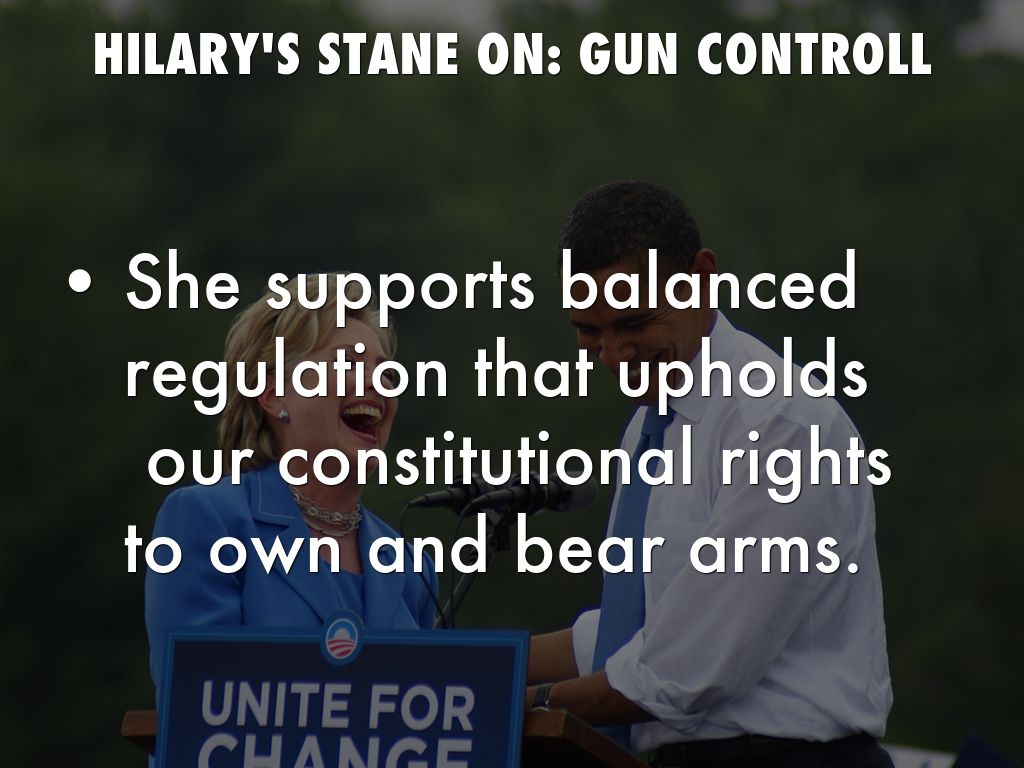 She supports balanced regulation that upholds our constitutional rights to own and bear arms.