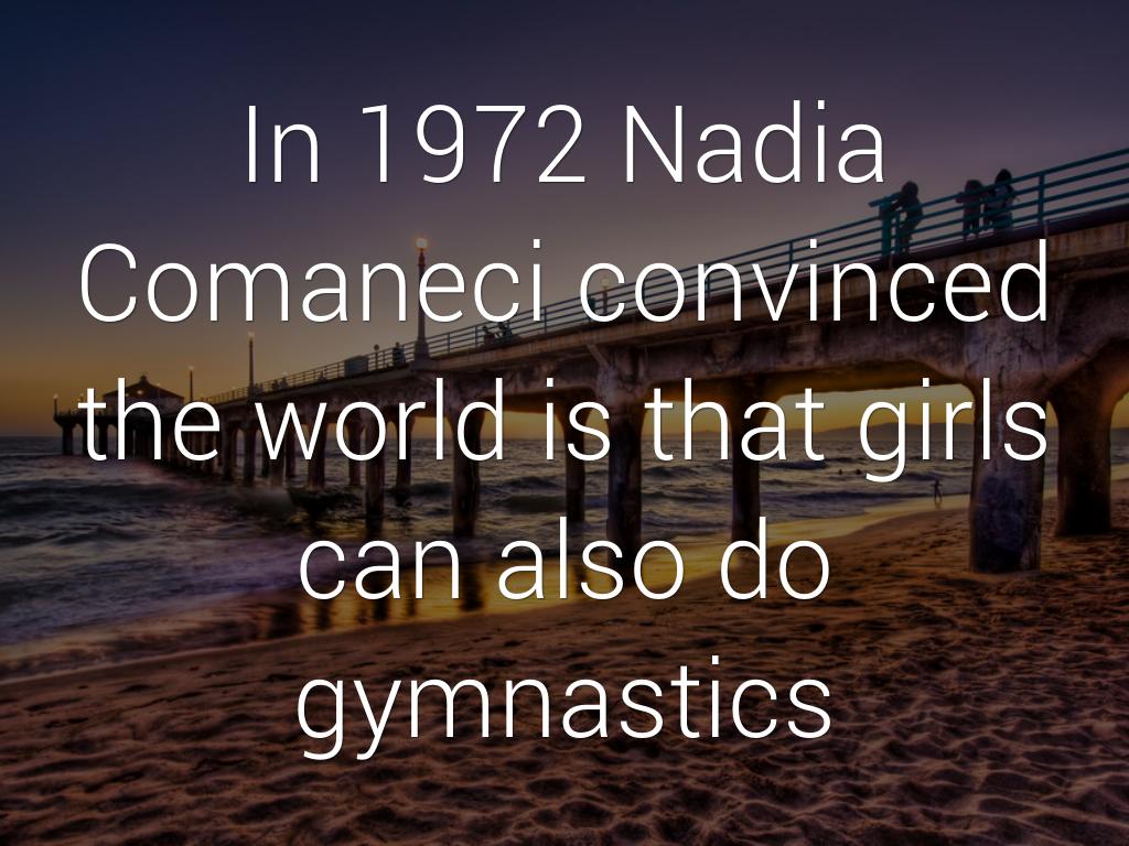 In 1972 Nadia Comaneci convinced the world is that girls can also do gymnastics
