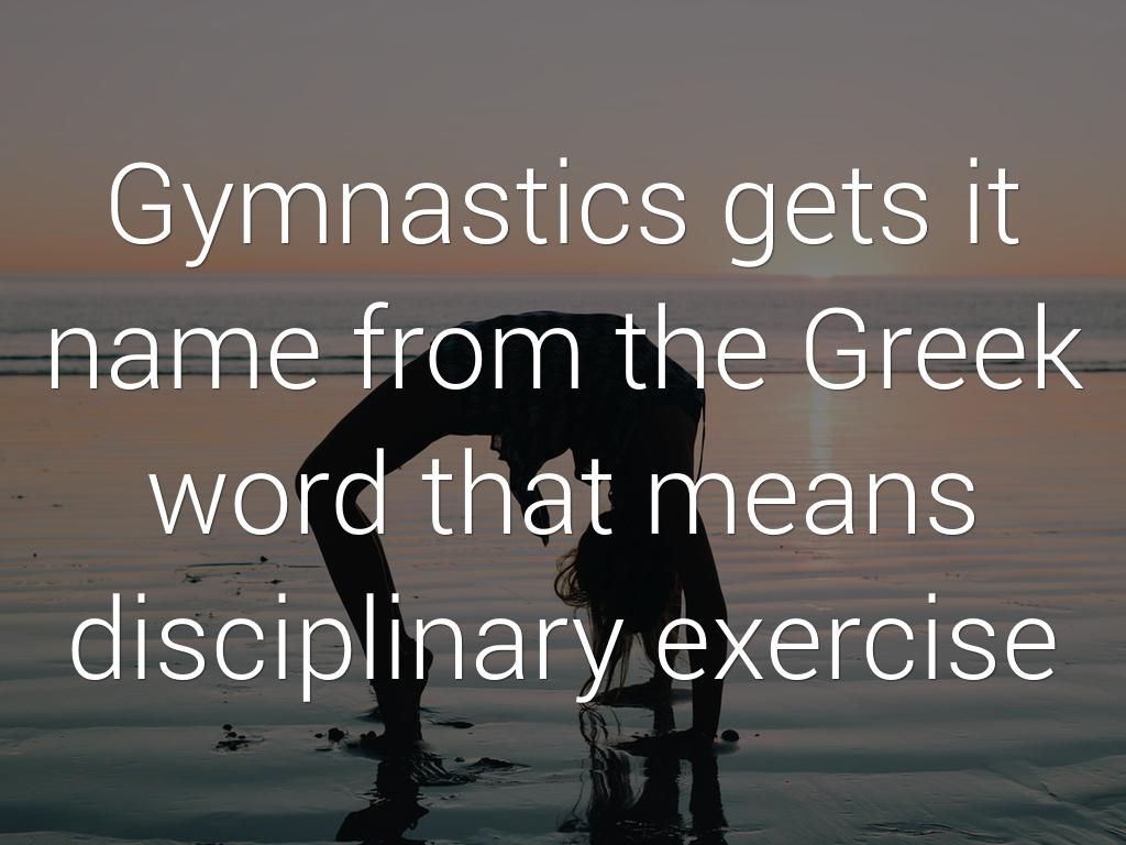 Gymnastics gets it name from the Greek word that means disciplinary exercise