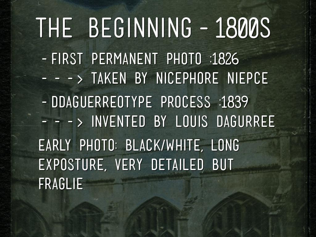 -DDaguerreotype process :1839 ---> invented by Louis Dagurree