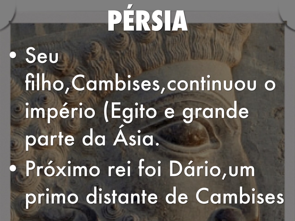 • Seu filho,Cambises,continuou o império (Egito e grande parte da Ásia.