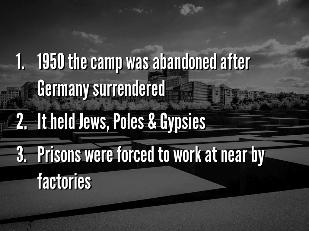 As allies closed in on Germany the nazi’s took prisoners away from the front lines to camps deeper within Germany. A typhus epidemic swept through the camp. At least 28,000 prisoners were murdered or died of disease. More than 32,000