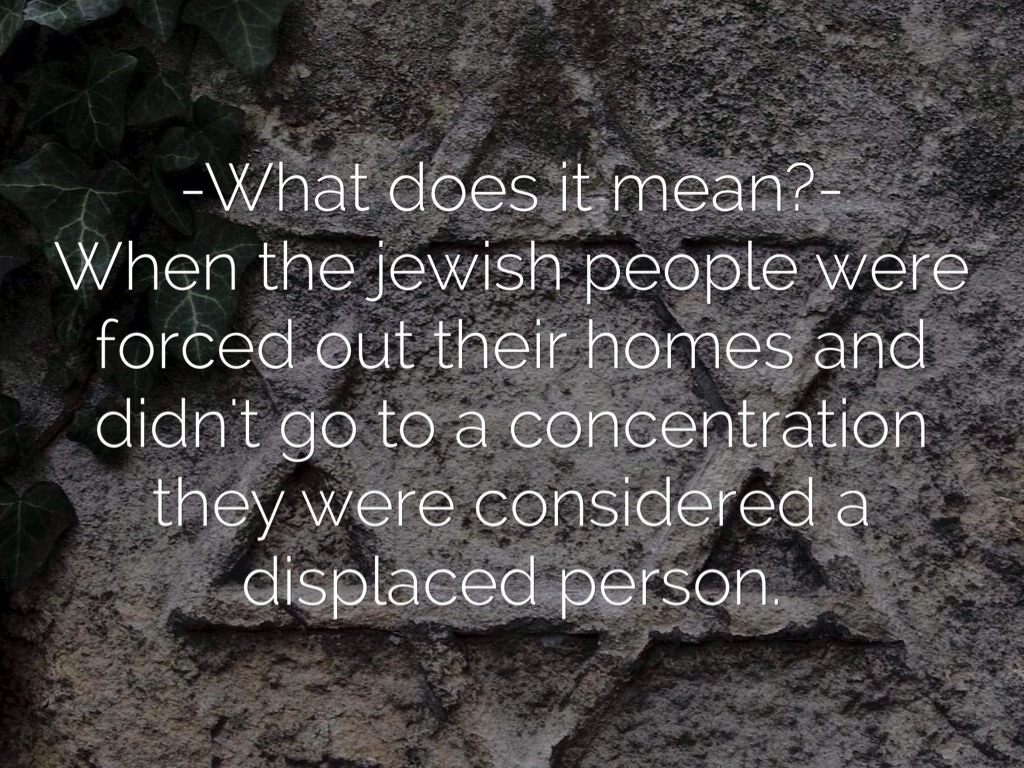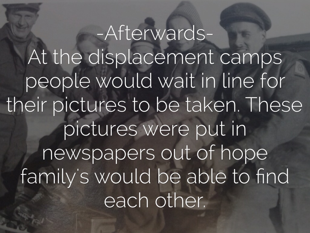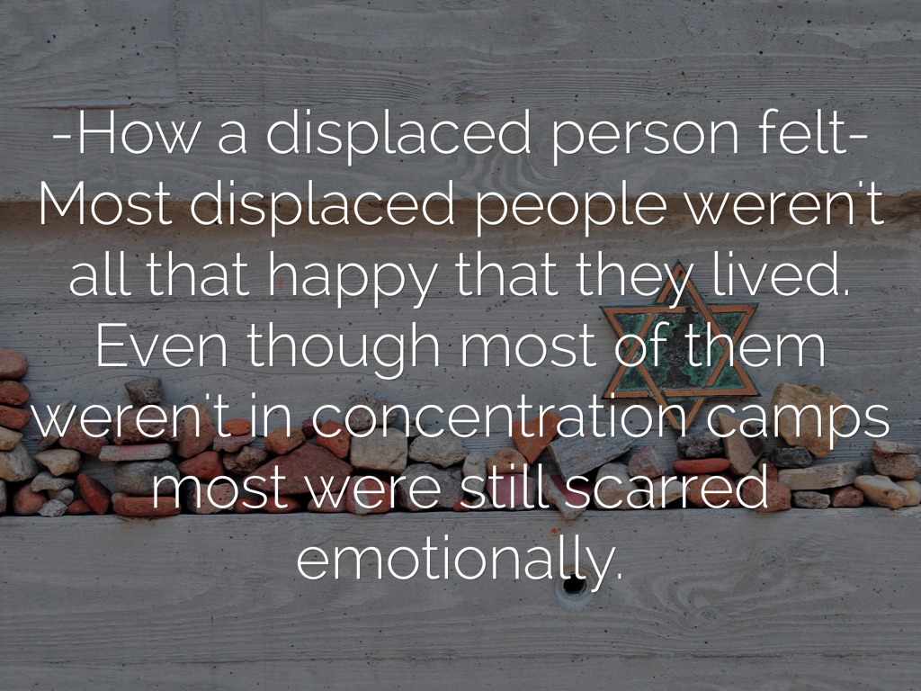 -How a displaced person felt- Most displaced people weren't all that happy that they lived. Even though most of them weren't in concentration camps most were still scarred emotionally.