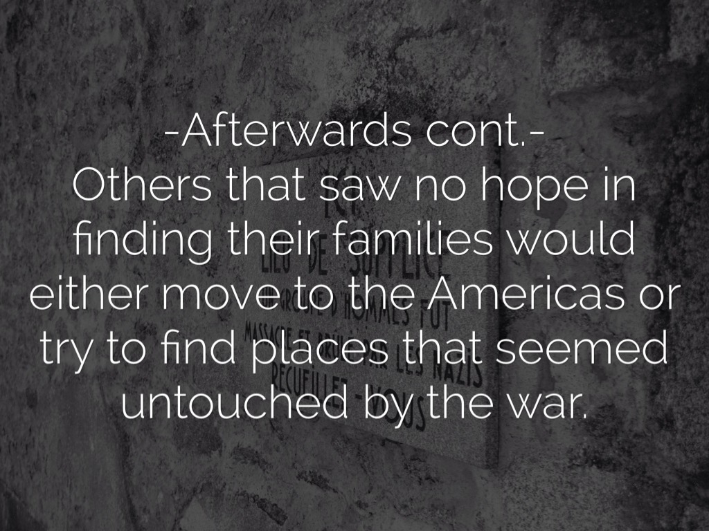 -Afterwards cont.- Others that saw no hope in finding their families would either move to the Americas or try to find places that seemed untouched by the war.