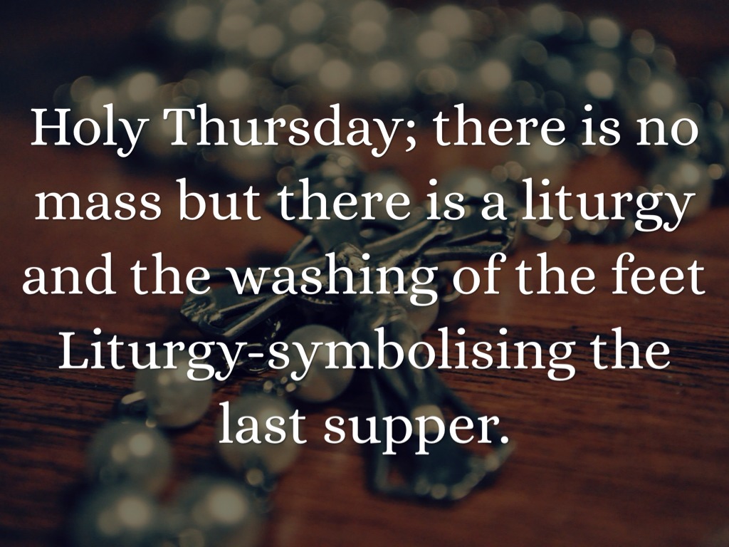 Holy Thursday; there is no mass but there is a liturgy and the washing of the feet Liturgy-symbolising the last supper.