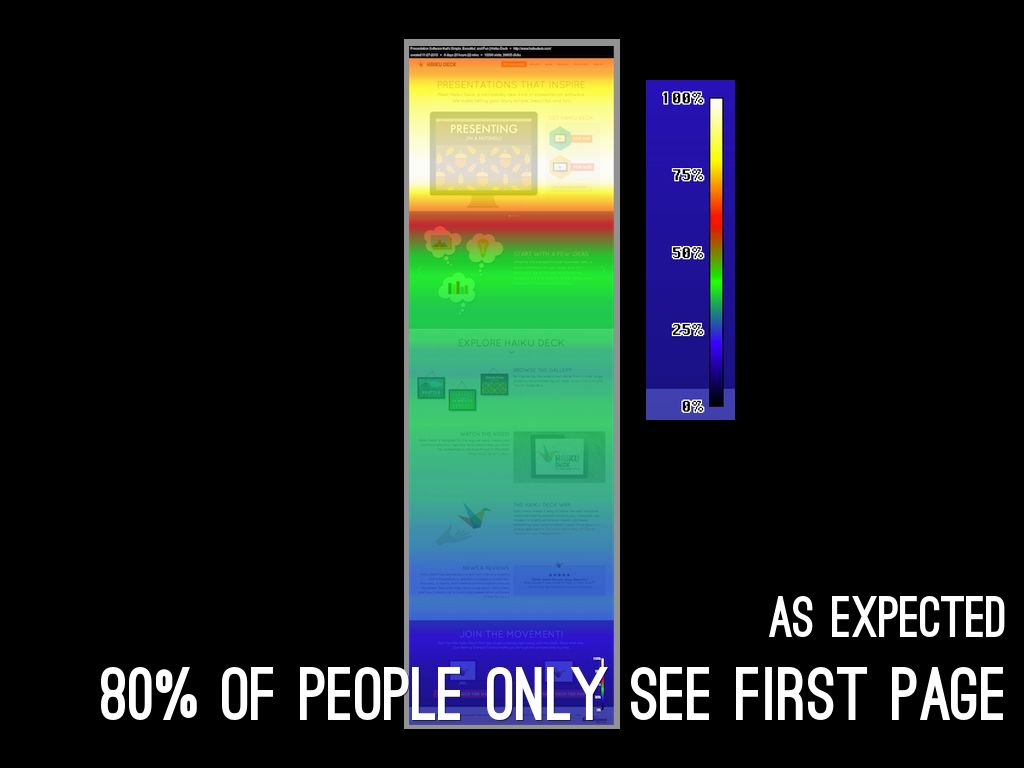 As expected, most people don't scroll past the the first page of the home page. We might want to review carefully what the demo-slides actually say.