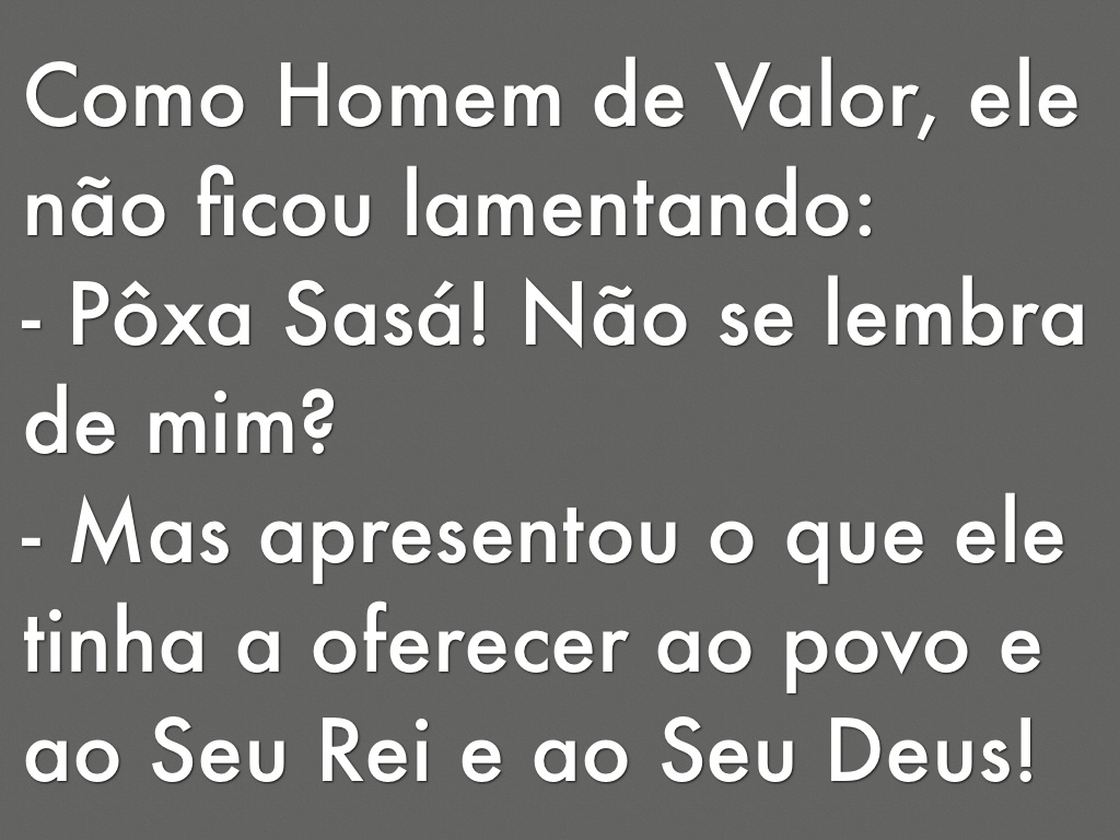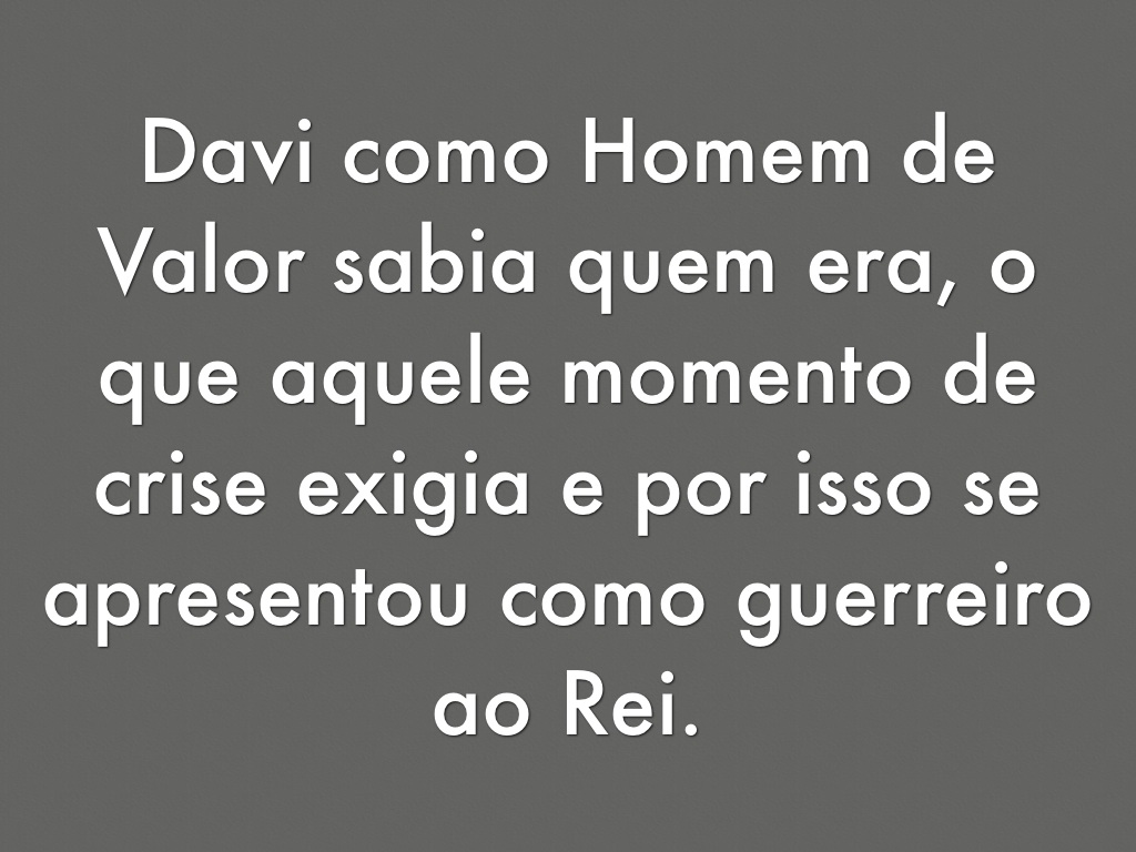 Davi como Homem de Valor sabia quem era, o que aquele momento de crise exigia e por isso se apresentou como guerreiro ao Rei.