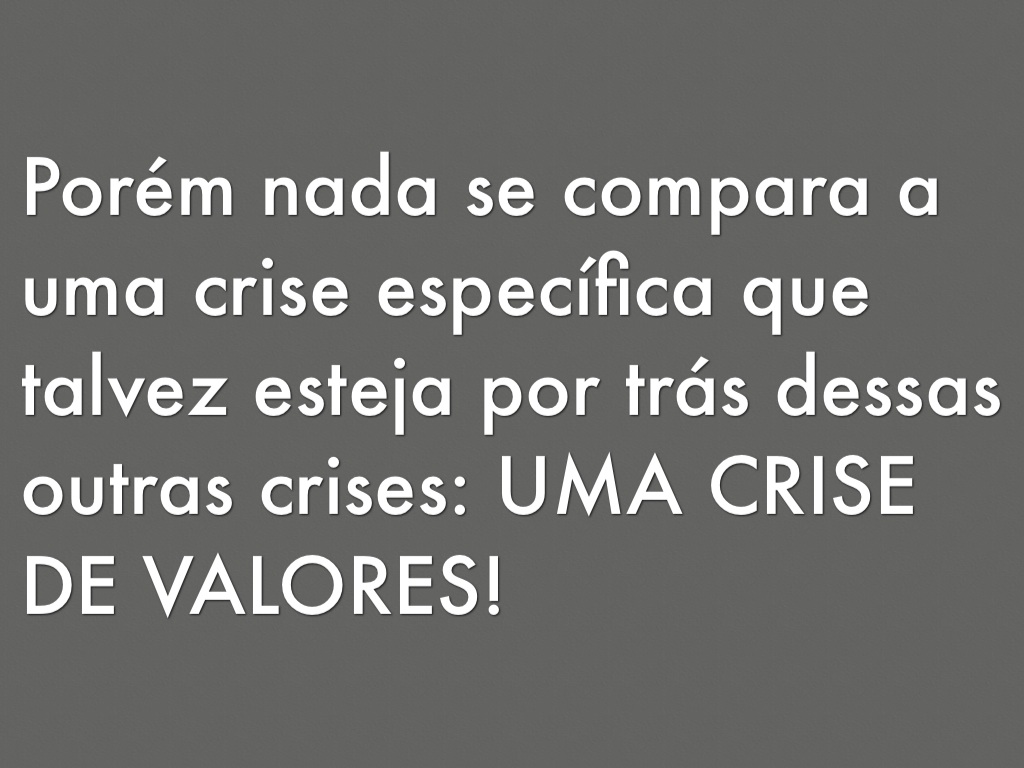 Porém nada se compara a uma crise específica que talvez esteja por trás dessas outras crises: UMA CRISE DE VALORES!