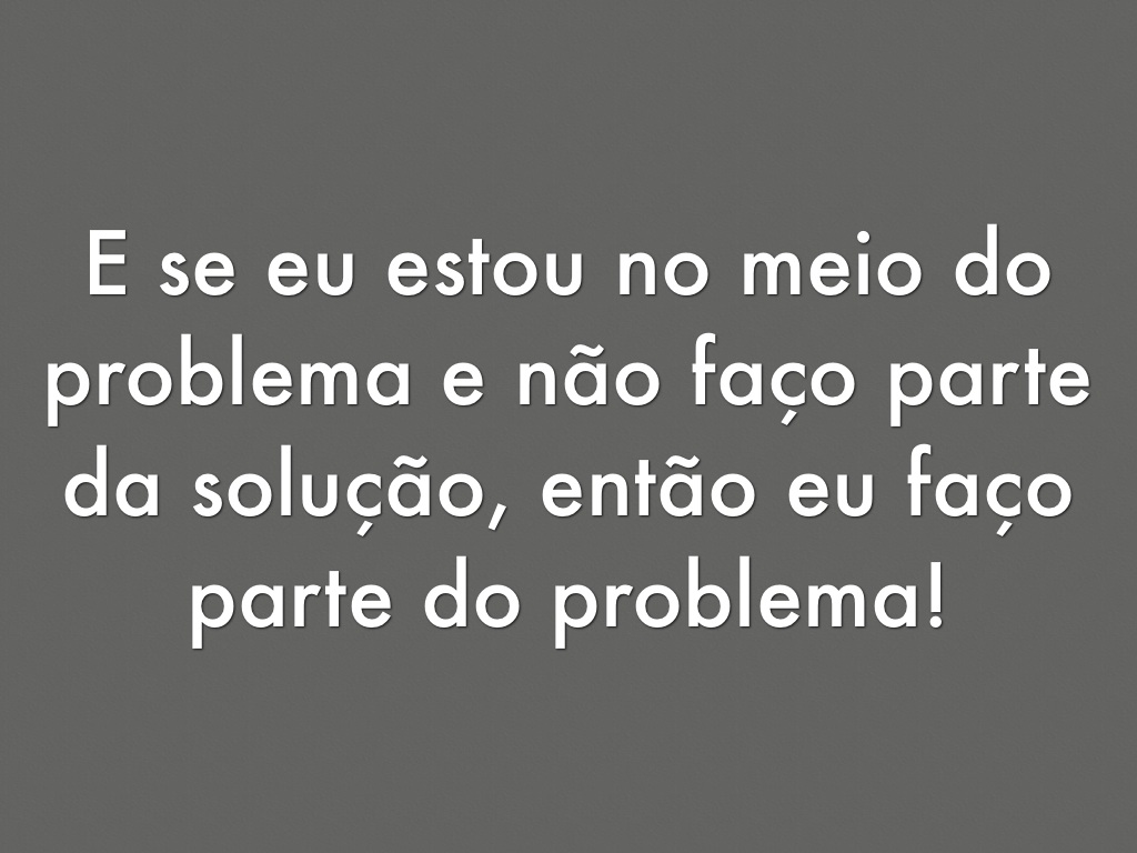 E se eu estou no meio do problema e não faço parte da solução, então eu faço parte do problema!