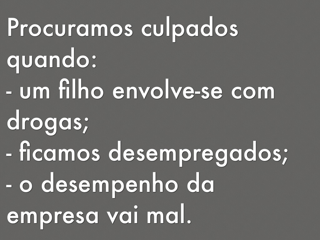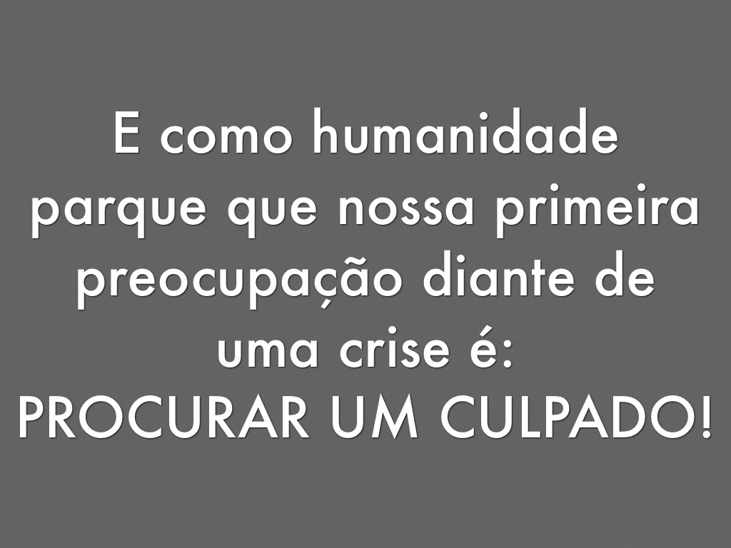 E como humanidade parque que nossa primeira preocupação diante de uma crise é: PROCURAR UM CULPADO!