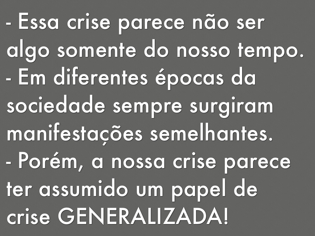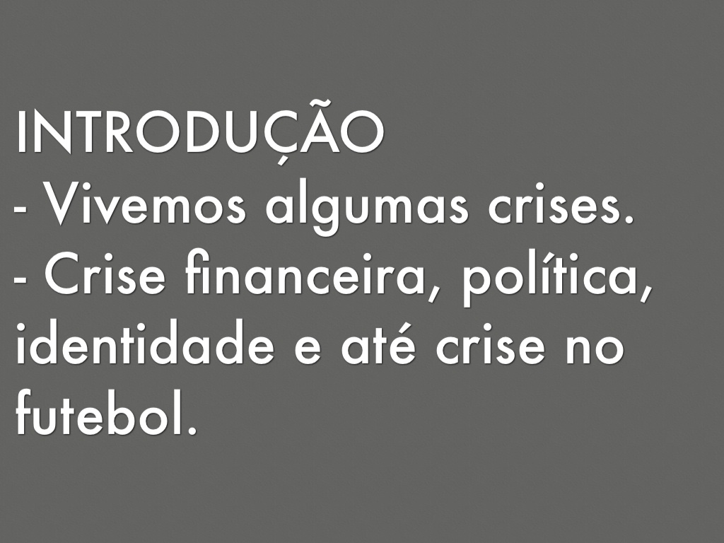 Essa CRISE gera outras crises como a de identidade, política e até mesmo a financeira!