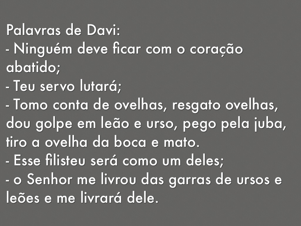 - o Senhor me livrou das garras de ursos e leões e me livrará dele.