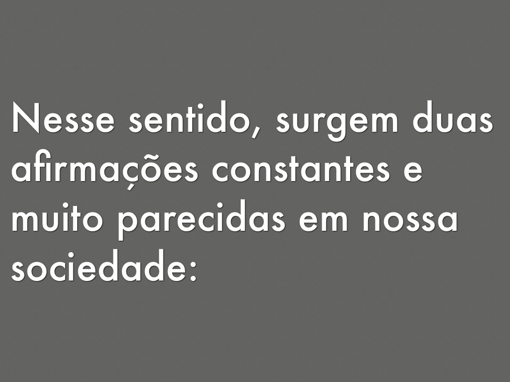 Nesse sentido, surgem duas afirmações constantes e muito parecidas em nossa sociedade: