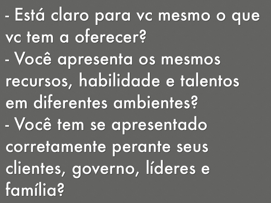 - Está claro para vc mesmo o que vc tem a oferecer?