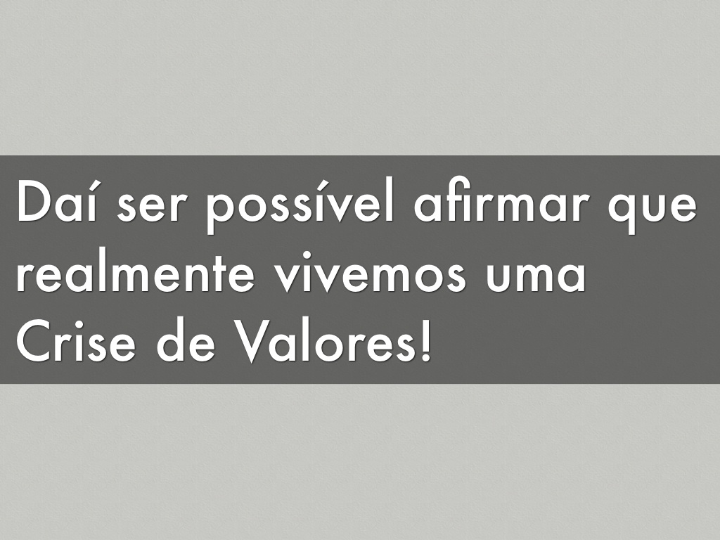 Daí ser possível afirmar que realmente vivemos uma Crise de Valores!