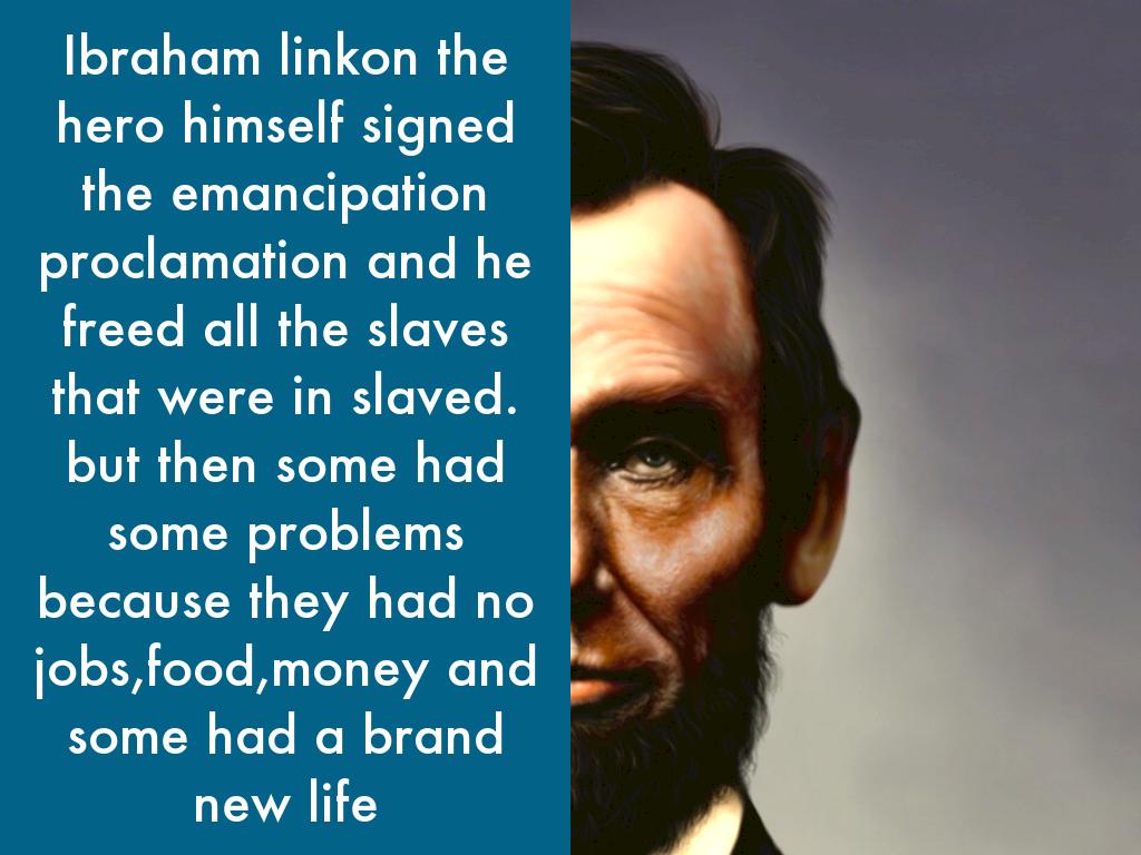 Ibraham linkon the hero himself signed the emancipation proclamation and he freed all the slaves that were in slaved. but then some had some problems because they had no jobs,food,money and some had a brand new life