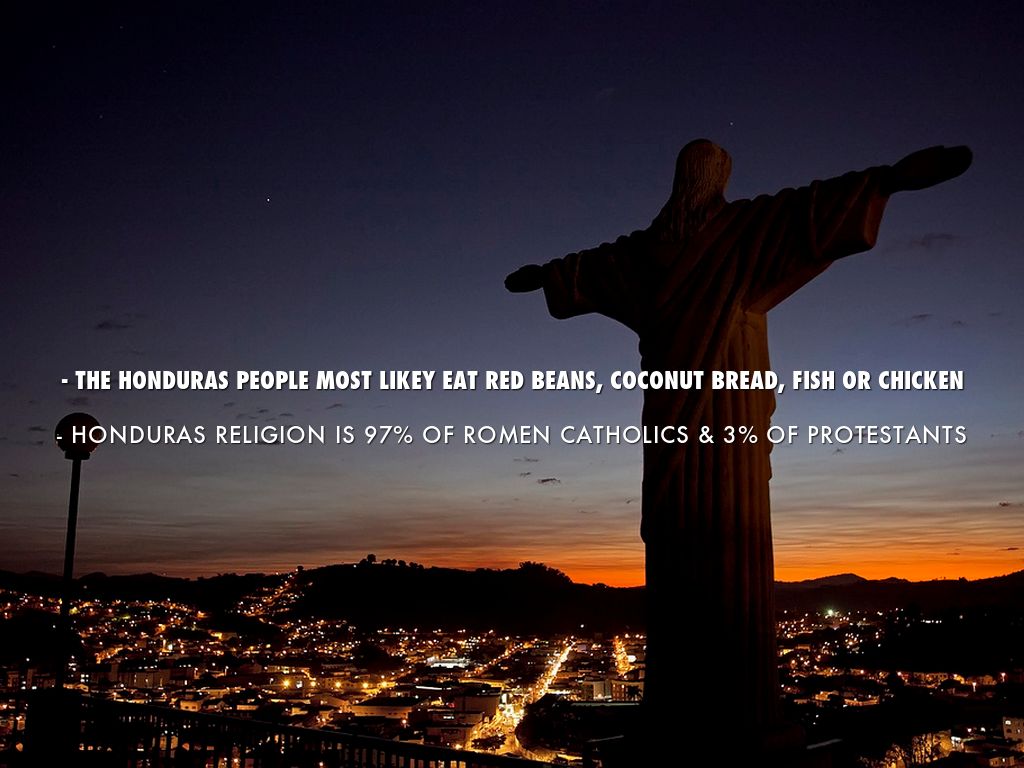 - HONDURAS RELIGION IS 97% OF ROMEN CATHOLICS & 3% OF PROTESTANTS