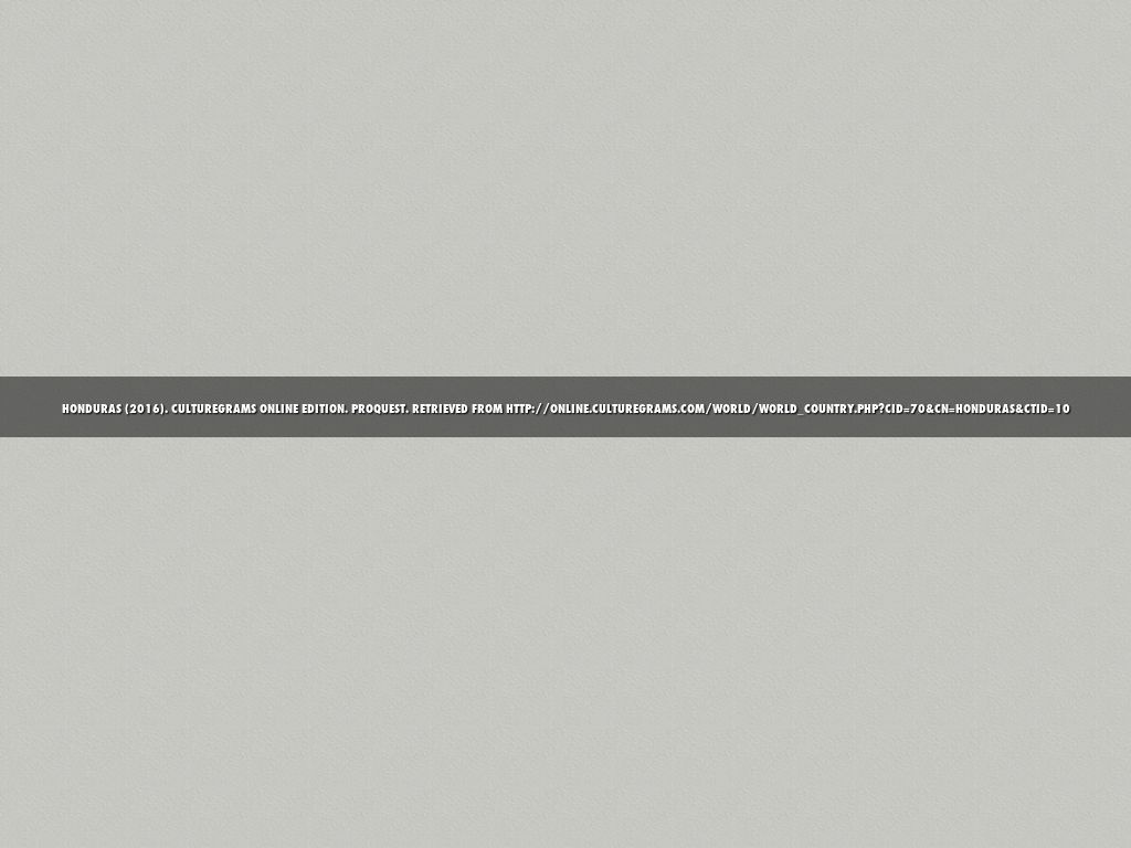 HONDURAS (2016). CULTUREGRAMS ONLINE EDITION. PROQUEST. RETRIEVED FROM