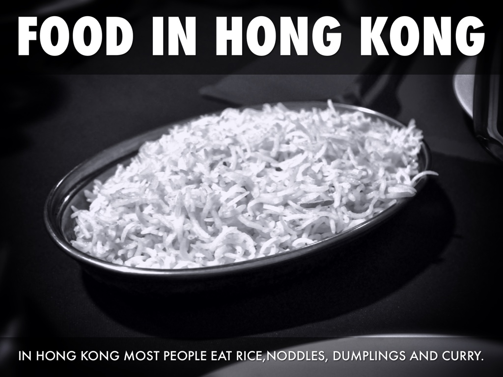 IN HONG KONG MOST PEOPLE EAT RICE,NODDLES, DUMPLINGS AND CURRY.