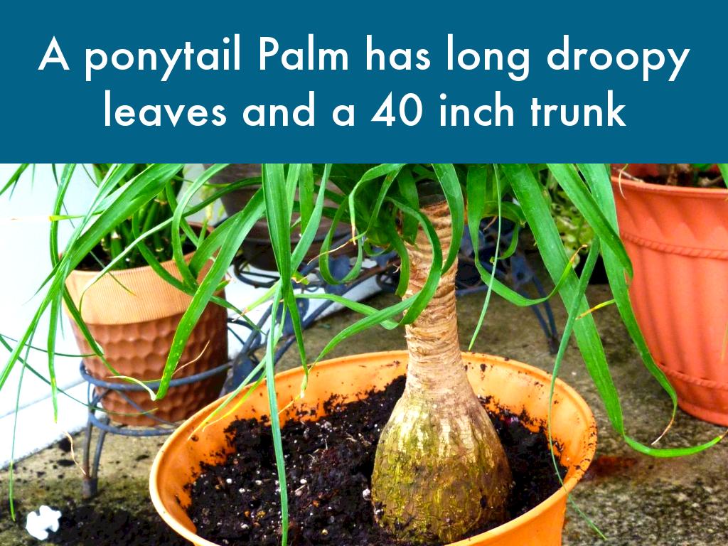 A ponytail Palm has long droopy leaves and a 40 inch trunk
