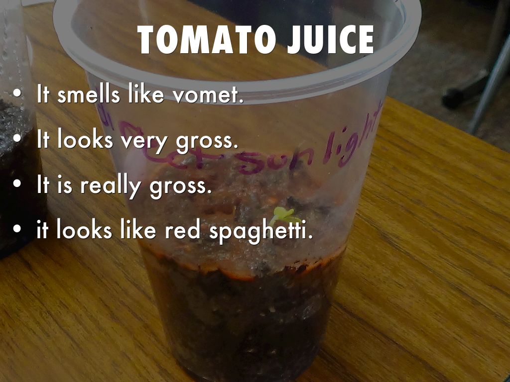 Day 5:Today the tomato juice plant smelled so bad that we threw it away