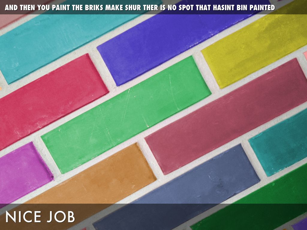 AND THEN YOU PAINT THE BRIKS MAKE SHUR THER IS NO SPOT THAT HASINT BIN PAINTED