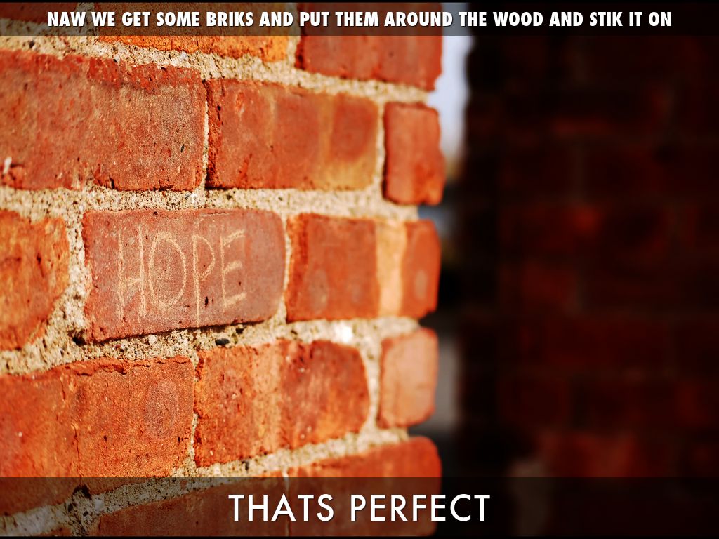NAW WE GET SOME BRIKS AND PUT THEM AROUND THE WOOD AND STIK IT ON