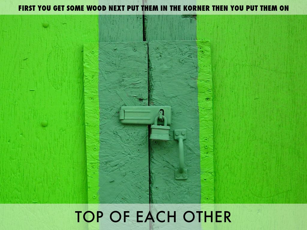FIRST YOU GET SOME WOOD NEXT PUT THEM IN THE KORNER THEN YOU PUT THEM ON