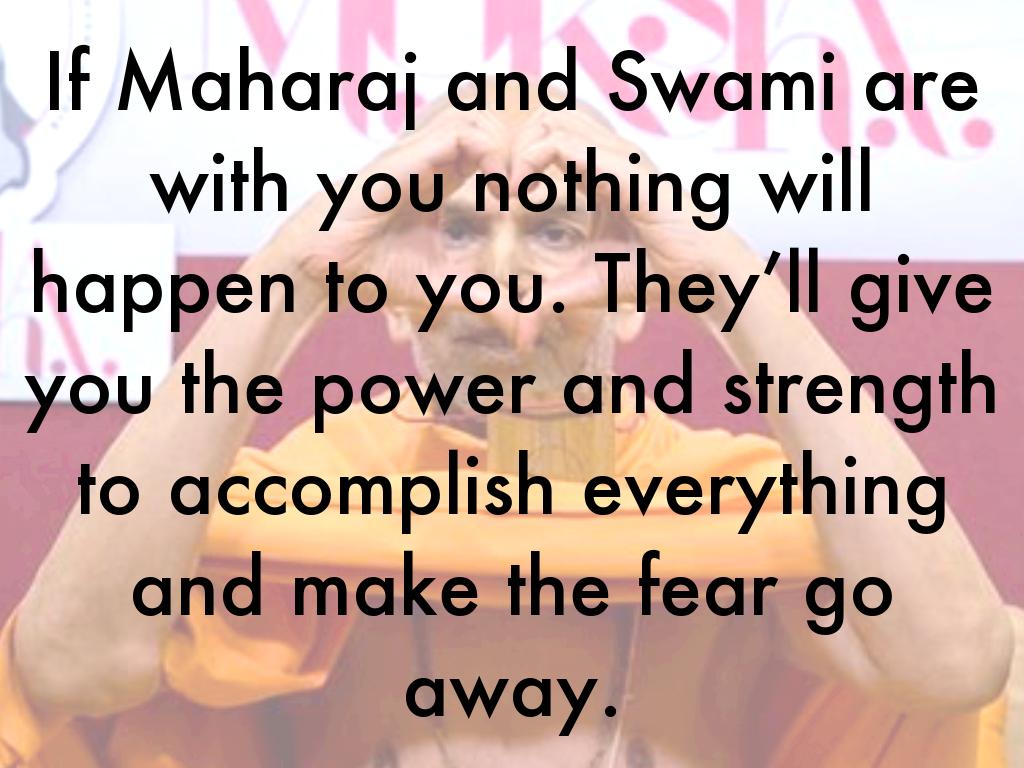 If Maharaj and Swami are with you nothing will happen to you. They’ll give you the power and strength to accomplish everything and make the fear go away.