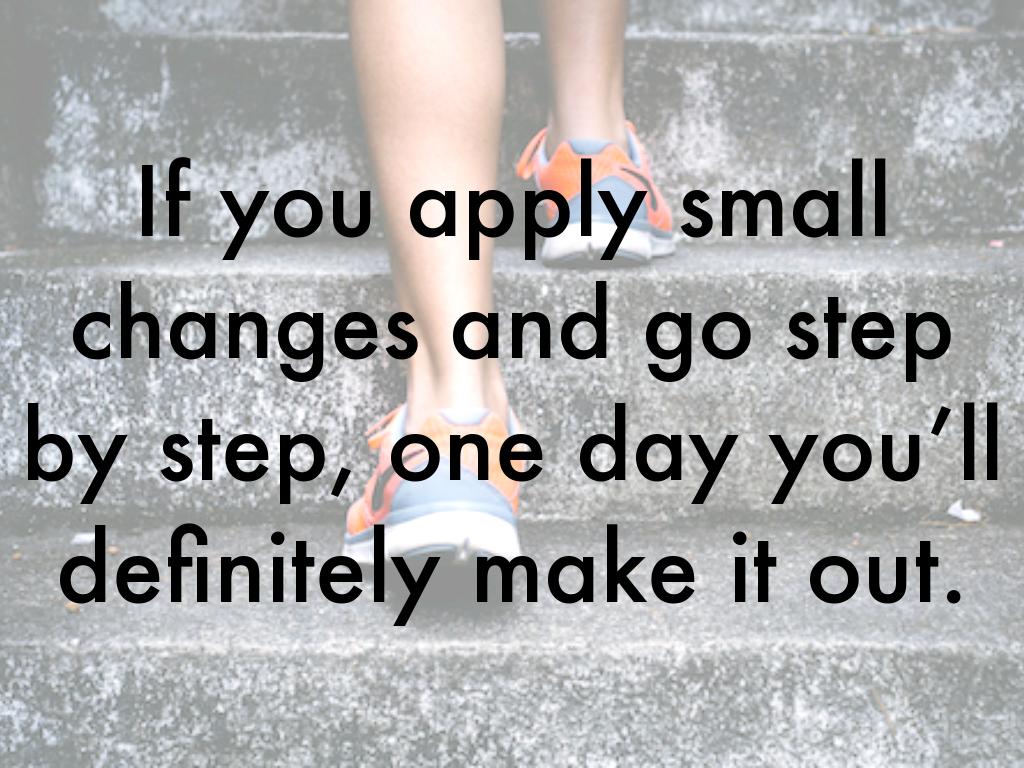 If you apply small changes and go step by step, one day you’ll definitely make it out.