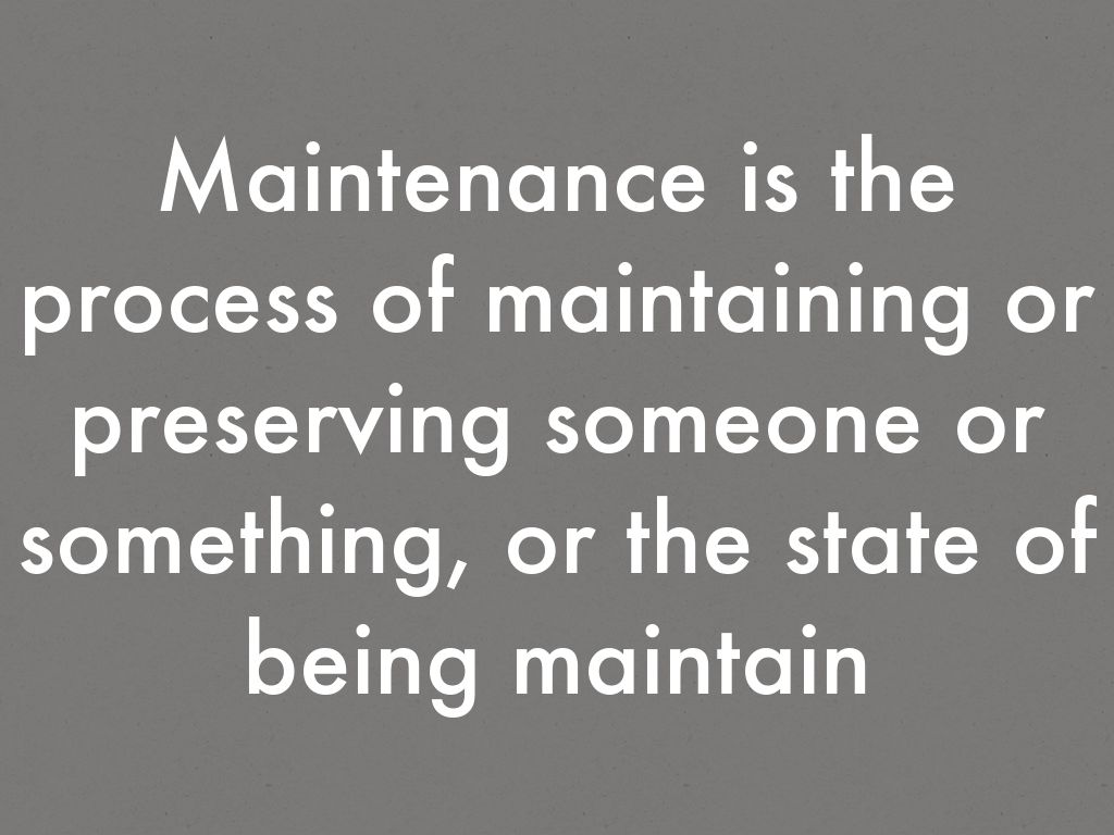 Maintenance is the process of maintaining or preserving someone or something, or the state of being maintain