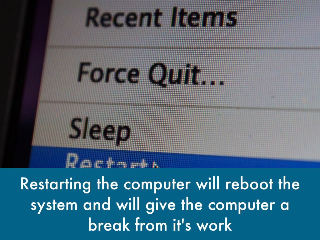 Restarting the computer will reboot the system and will give the computer a break from it's work