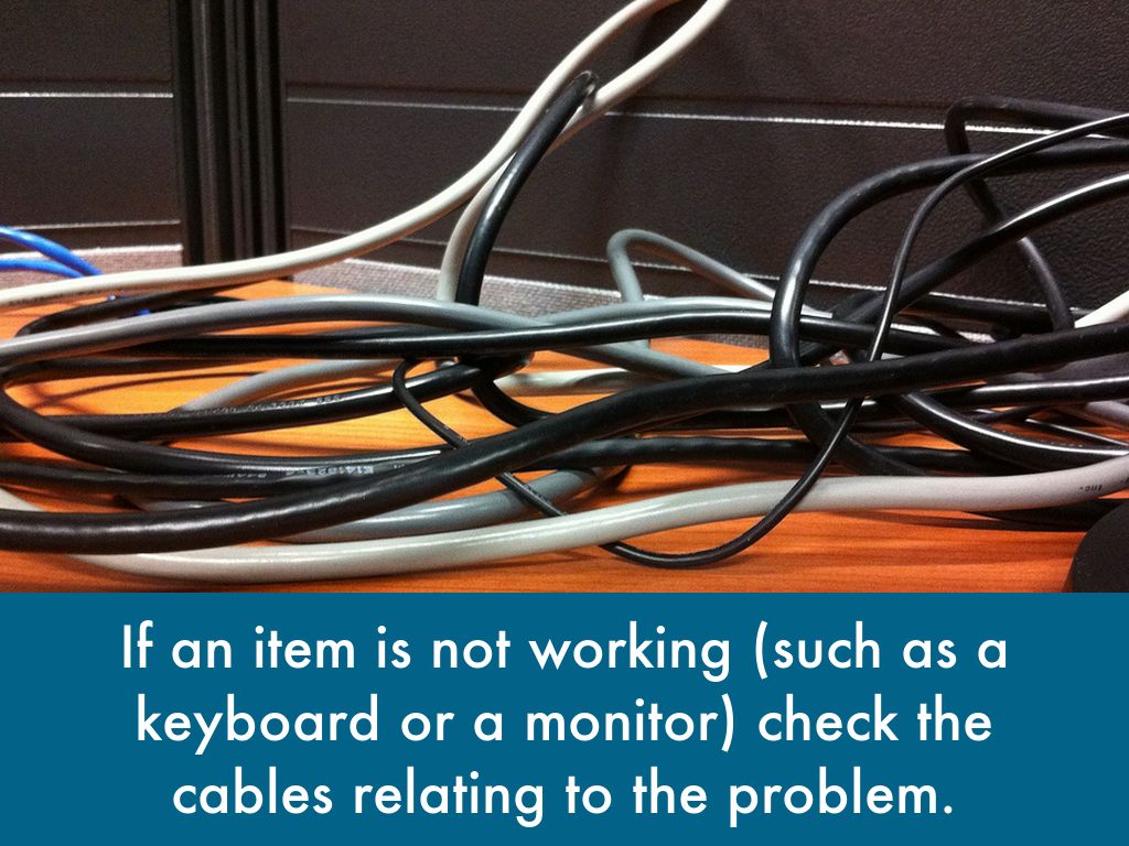 If an item is not working (such as a keyboard or a monitor) check the cables relating to the problem.