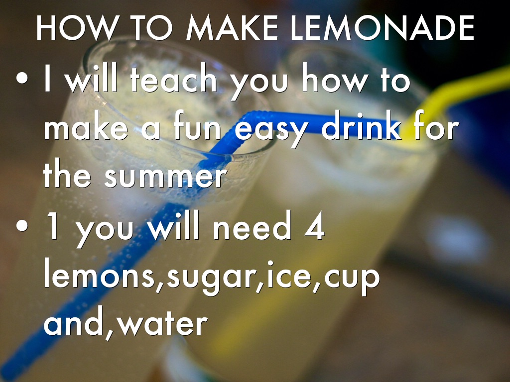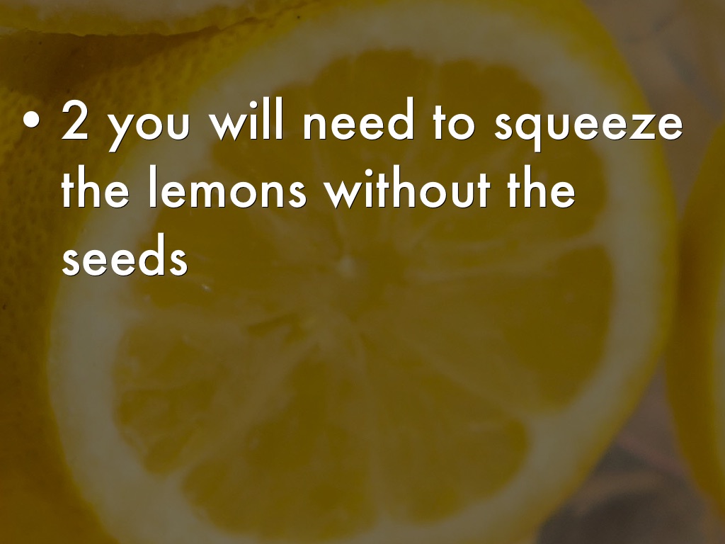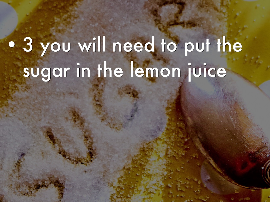 1 you will need 4 lemons,sugar,ice,cup and,water