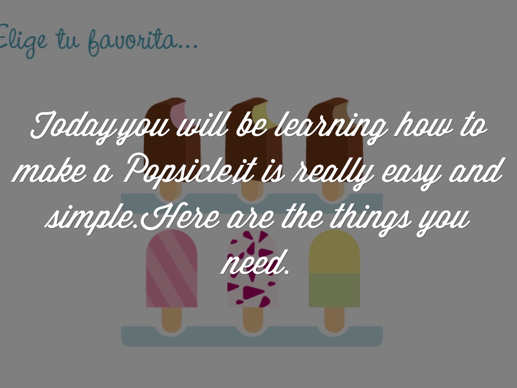Today,you will be learning how to make a Popsicle,it is really easy and