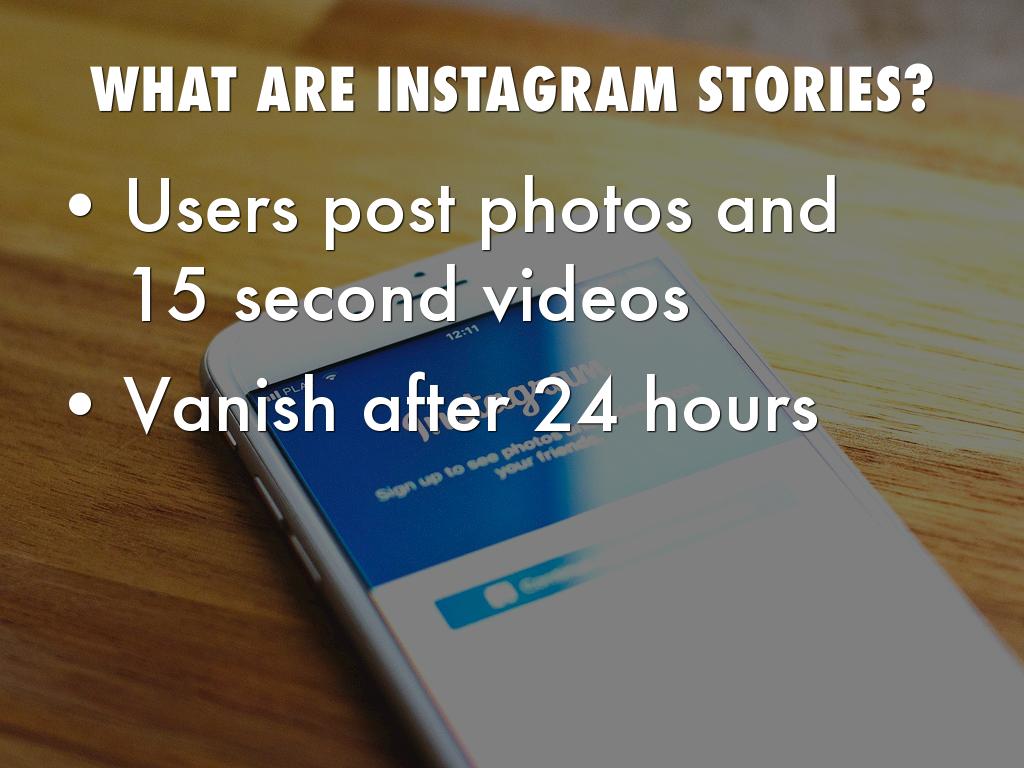 Instagram Stories is a feature that lets users post photos and 15 second videos, that vanish after 24 hours.